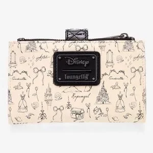 Featuring an allover design of Disney Princess sketches, this wallet includes a metal bow charm, a zippered pouch, card slots, and a clear ID sleeve.