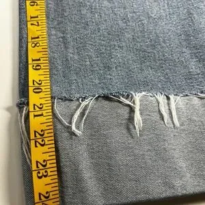 • Distinctive raw, frayed hem with a wide fold-over cuff detail