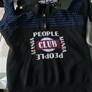 Sandro Black Zip-Neck Wool Knit Sweater with Blue Stripe Accent