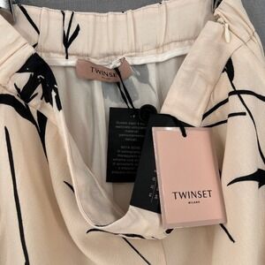 TWINSET Milano Palazzo Womens XS IT40 Pants Cream Black Floral Print Wide Leg