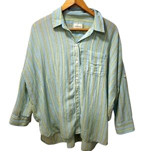 American Eagle Outfitters Womens Striped Button-Up Over-Size Shirt