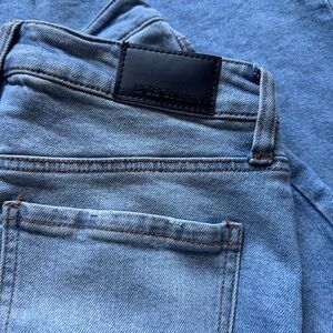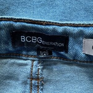 Classic light blue denim fray slit skirt by BCBGeneration. Casual and versatile style. Easy to pair with and style.