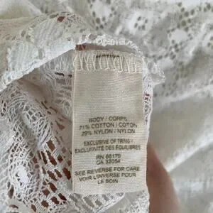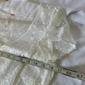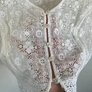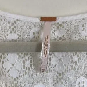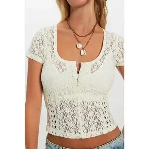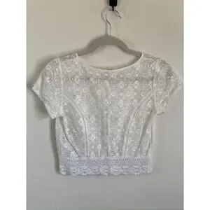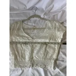 Free People White XS S Lace Cropped Button Short Sleeve Blouse Coquette