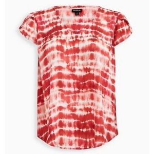 Torrid Rusty Red Tulip Sleeve Georgette Tie Dye Top 1X