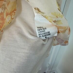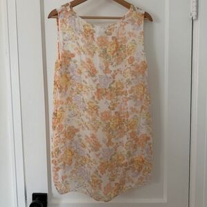 Giusy Silk Floral Lined Sleeveless V-Neck Flowy Top Orange Yellow Sz L: party