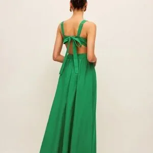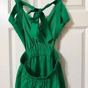Gorgeous green maxi dress with cut out sides and low cut back and detailed tie. Adjustable straps and elastic waistband.