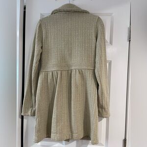 The Patagonia Better Sweater Coat is a stylish and practical choice for women in size small. Made from polyester fleece, this mid-length jacket in tan features a button front closure and pleated accents. Perfect for travel and casual occasions during the winter and fall seasons, this coat also includes a collar, single-breasted design, pockets, and is unlined for added comfort. With a regular fit and long sleeves, this Patagonia coat is a versatile and high-quality addition to your wardrobe.