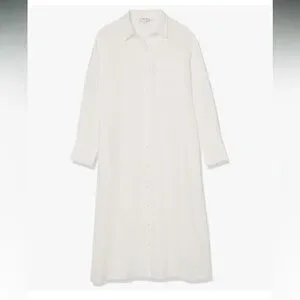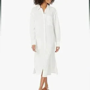 White Button-Up 100% Linen DRESS by The Drop. Size L. Splits. Pockets. New!