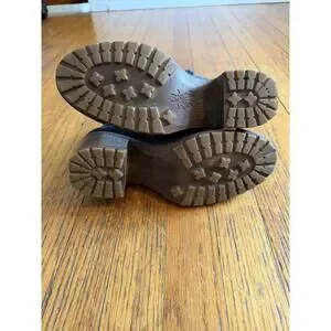 Style and features: Ankle-height combat-inspired boots designed for everyday wear with a sturdy mid-height block heel.