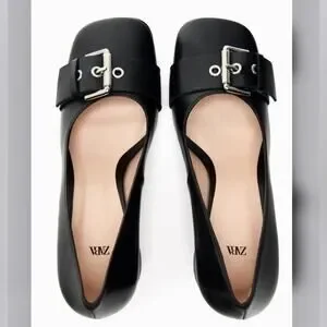 Zara Black SINGLE MONK STRAP LEATHER SHOES 7.5 US