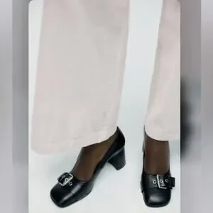 Zara Black SINGLE MONK STRAP LEATHER SHOES