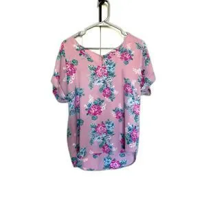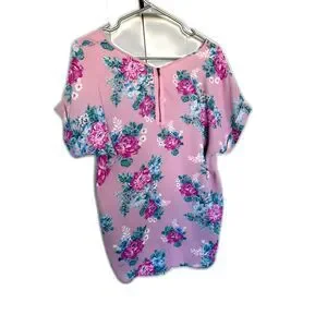 HIPPIE ROSE Junior’s Back-Zip Cuff-Sleeved Top, Purple Floral Size L