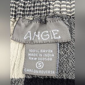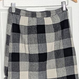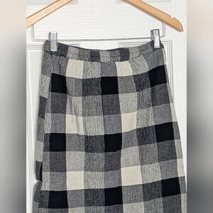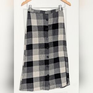 Angie Women's (Small) Black & Cream Checkered/Plaid Button-Down Front Midi Skirt