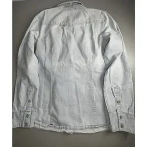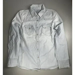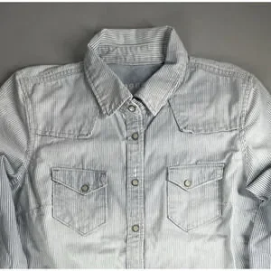 Gap 1969 Denim Pearl Snap Shirt Womens XL Light Blue Stripe Western Country