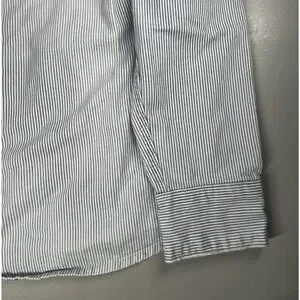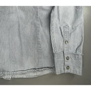 * Heavyweight denim, striped, pearl snap buttons, western style pockets/trim.