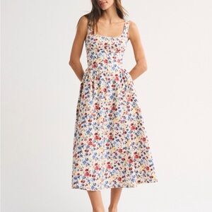 A&F Bra-Free Dylan Midi Dress in print Cream Floral, regular length