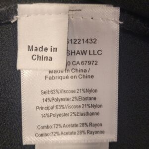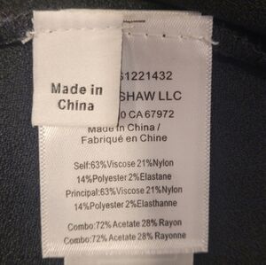 Shell: 63% viscose/21% nylon/14% polyester/2% elastane