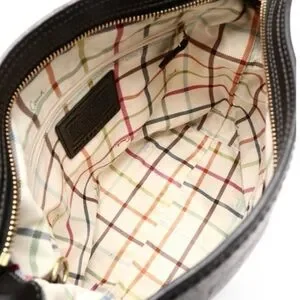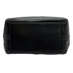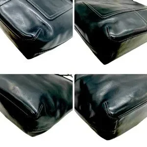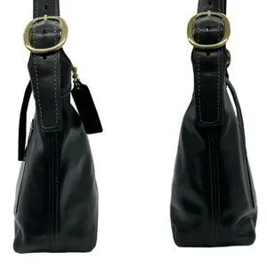 Elegant black leather bag by Coach. Gold-tone accents and adjustable shoulder strap.
