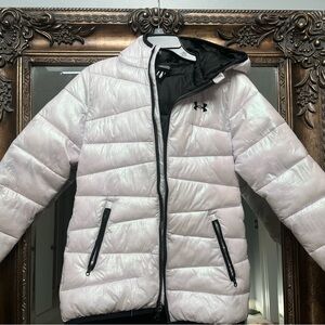 Under Armour Kids' White pink shimmer Puffer Jacket youth medium