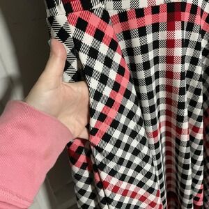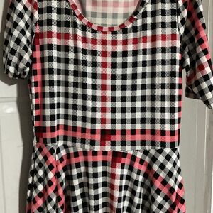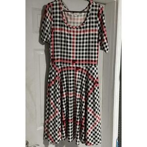 LuLaRoe Dress Womens XL Multicolor Plaid Fit Flare Knit Scoop Neck Short Sleeve