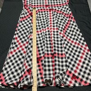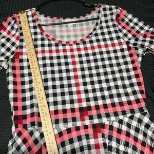 Details: Pullover construction with scoop neck, fitted bodice, and flared knee-length skirt for easy movement. Short sleeves and smooth unlined knit make this dress comfortable for casual everyday wear in spring, summer, or fall. Allover plaid pattern creates a bold graphic look.