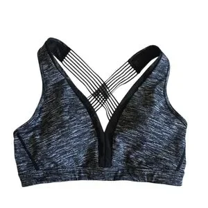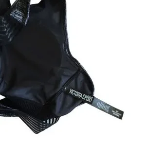 Victoria's Secret Black Cross-Back Sports Bra with Striped Straps