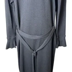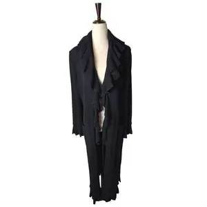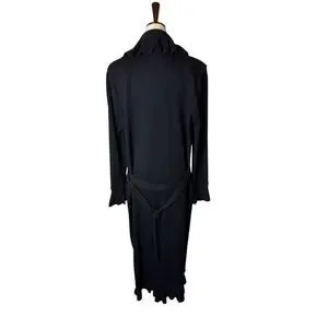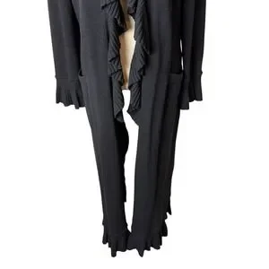 St John Collection Ruffle Knit Maxi Cardigan Women 6 Black Excellent Belted