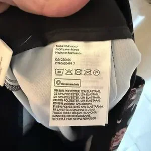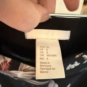 Chic H&M high-waisted trousers in a satin-feel floral crane print with wide straight legs, side pockets, and a concealed hook-and-eye zip closure. Polyester/elastane blend with a smooth drape and a polished look that can be styled casually with a bodysuit or dressed up with heels. Perfect for vacation, beach trips, festivals, summer markets, or warm weather travel.