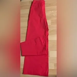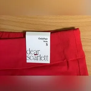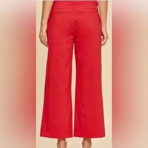 RED HIGH-RISE RAYON BLEND WIDE LEG CROPPED PANTS: Size Small