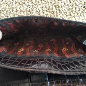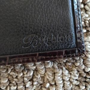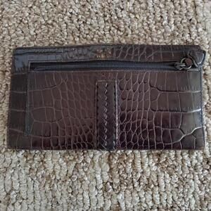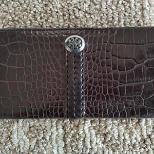 Brighton Vintage Wallet Leather Croc Embossed Black Brown Bi-Fold