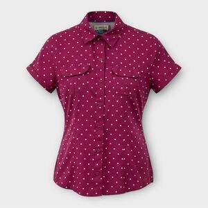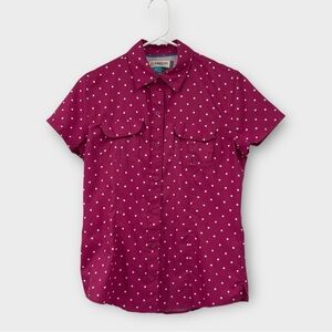 Magellan Fishing Hiking Short Sleeve Button Down Top in Pink Polka Dot Size S
