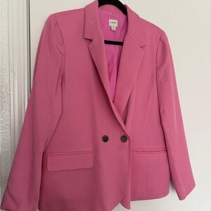 J. Crew Vibrant Pink Drapey Twill Double-Breasted Blazer