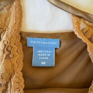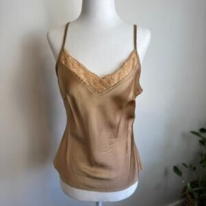 Y2K Silk Lace Trim M Anthropologie White + Warren Tan Beige Lace V Cami 00s