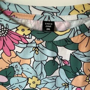 SHEIN Multicolor Floral Short Sleeve Top - Pink, Yellow, Orange, Green