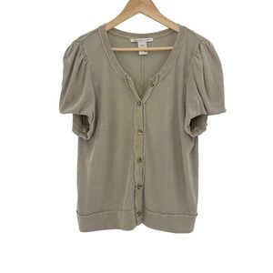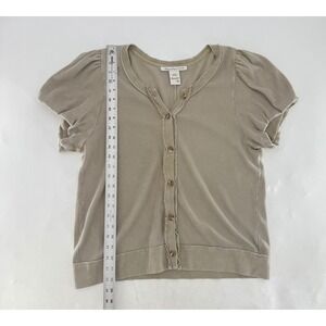 Keywords: American Rag, Waffle Knit, Short Sleeve, Button Up, Puff Sleeve, Womens Top, Beige Top, Casual Top, Layering Piece, Comfortable, Basic Top, Plus Size Top, XL Top