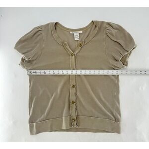 American Rag Womens Beige Waffle Knit Short Sleeve Button Up Top XL
