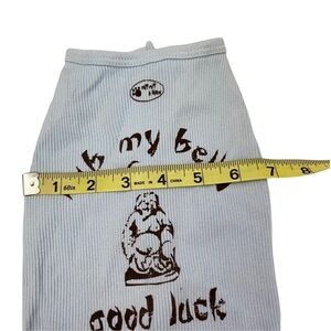 NWOT Ruff Ruff and Meow Ribbed Sky Blue Tee Dog Buddha Rub my Belly Sz Med. B32