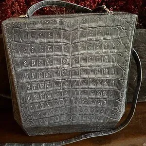 Nancy Gonzalez Crocodile Slate Blue Rectangular Prism Bag