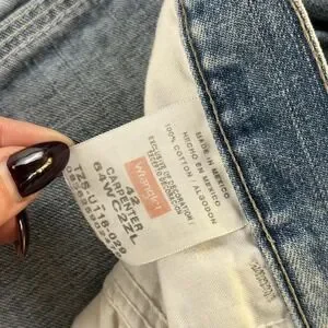 Branding and label details: Interior care tag lists 100% cotton fabrication and notes that the shorts are made in Mexico with carpenter style information.