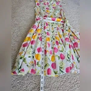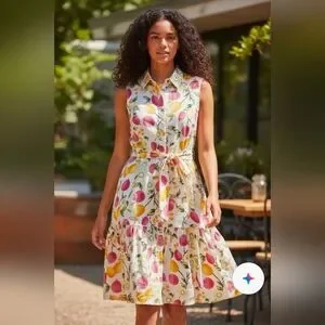 Cynthia Rowley Linen Blend Dress size 8 women's Sleeveless Button Front Fruit Print Belted. Beautiful dress. No flaws