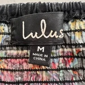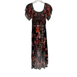 Lulus Black Vibrant Floral Off Shoulder Hi Lo Dress M Boho Tropical Vacation