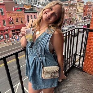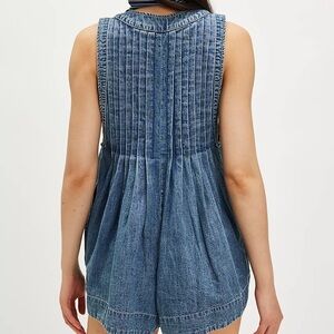 Free People Blue Denim Overall Romper