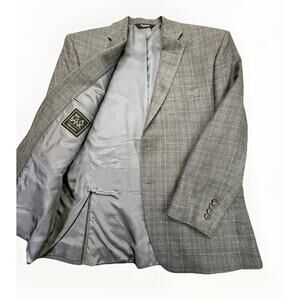 Jos A Bank Signature Collection Blue Grey Plaid Blazer Silk/Wool 4 Button 42R