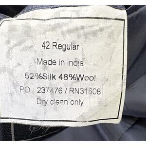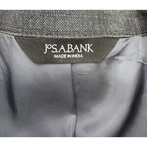The Jos A Bank Signature Collection Blue Grey Plaid Blazer. Made from a blend of silk and wool. The double-vented back adds a touch of sportiness, while the inner pockets provide functionality. Perfect for travel, weddings, parties, or business events, this blazer is tailored in a regular fit size 42.