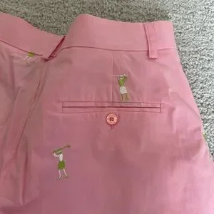 Lilly Pulitzer vintage Pink Women's golf Shorts with Embroidered gold design