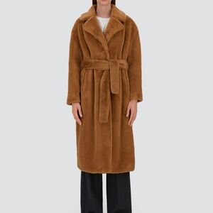 New!!! Camel brown faux fur coat with belt & side pockets