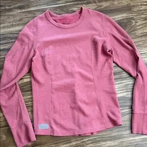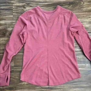 Soft long-sleeve thermal sweater in a dusty rose pink. Comfortable crewneck design with subtle texture for everyday layering. Lightweight warmth, good for running in the spring. Size Small. Good used condition