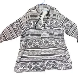 Keywords: bridge gate, geometric, print, hooded, cardigan, jacket, women, plus size, tribal, aztec, boho, cozy, fall, winter, loungewear, Vintage