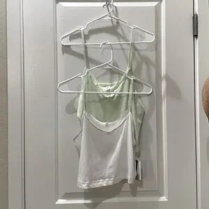 NWT…Set of two short tank tops in green and white. Perfect for layering or casual wear. Both size large.