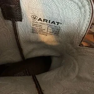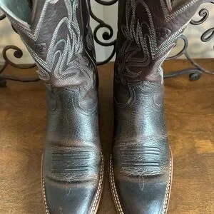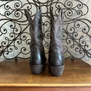 Classic women’s brown leather western boots with detailed embroidery on the shaft. Durable leather construction provides reliable wear and comfort. Styled toe and stitched welt add timeless western appeal. Easy to pair with casual or country outfits.